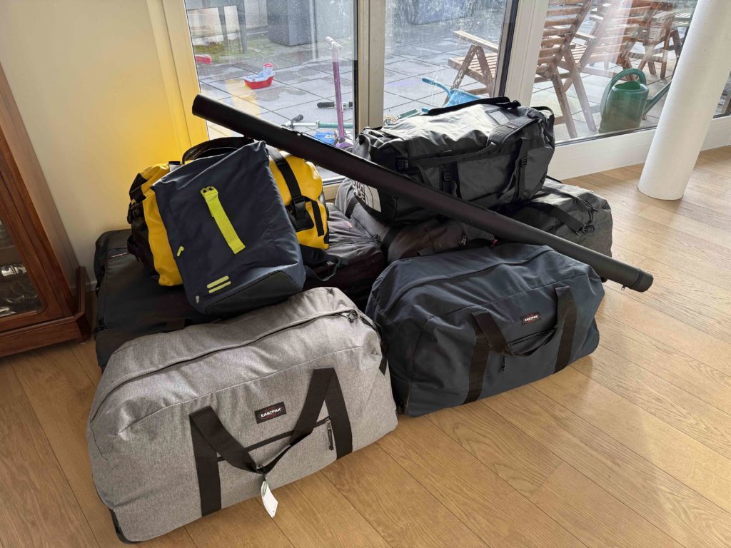 Une journée consacrée aux bagages. Le moment de se rendre compte qu’on ne pourra peut-être pas tout emporter avec nous (plus de 180kg de matériel quand même).