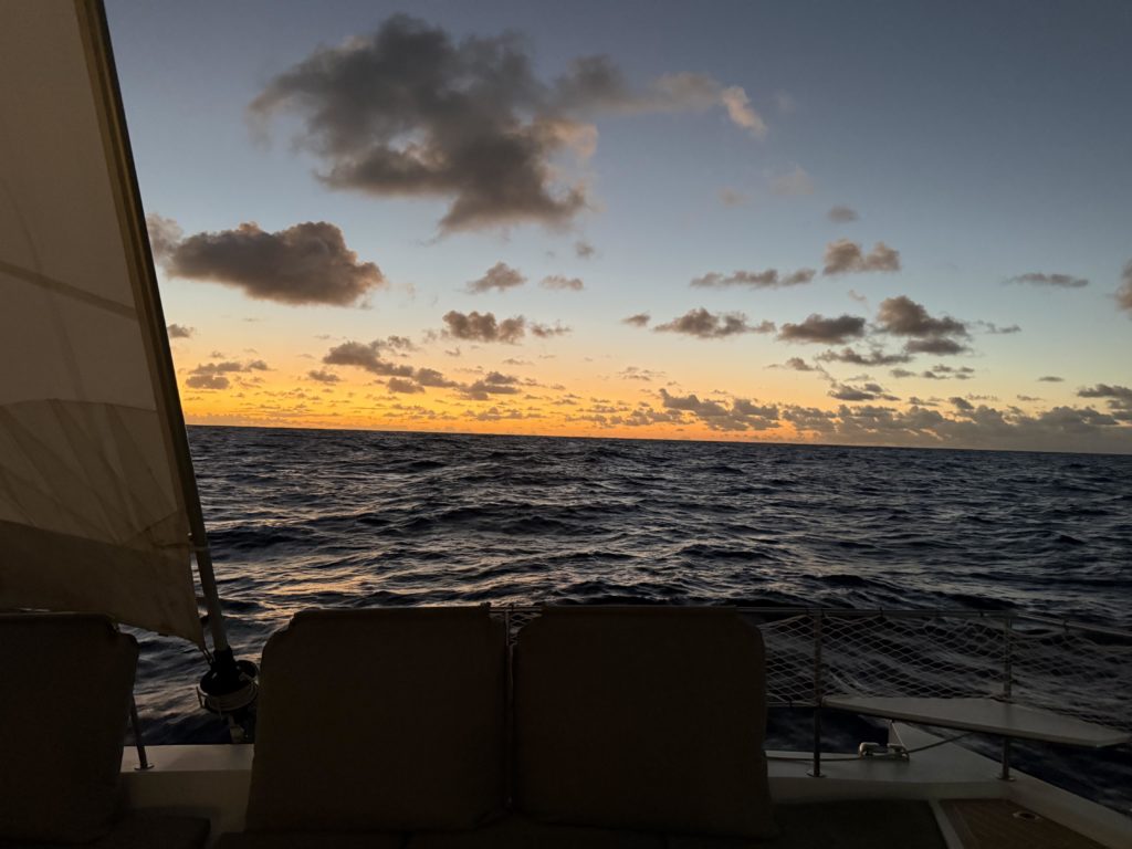 Et parce qu’on aimerait vous dire merci à notre manière pour votre soutien et vos encouragements depuis le début de cette aventure, voici le beau coucher de soleil du jour, rien que pour vous. A demain pour la suite de la Transat’espoir : une famille pour DFDL!
