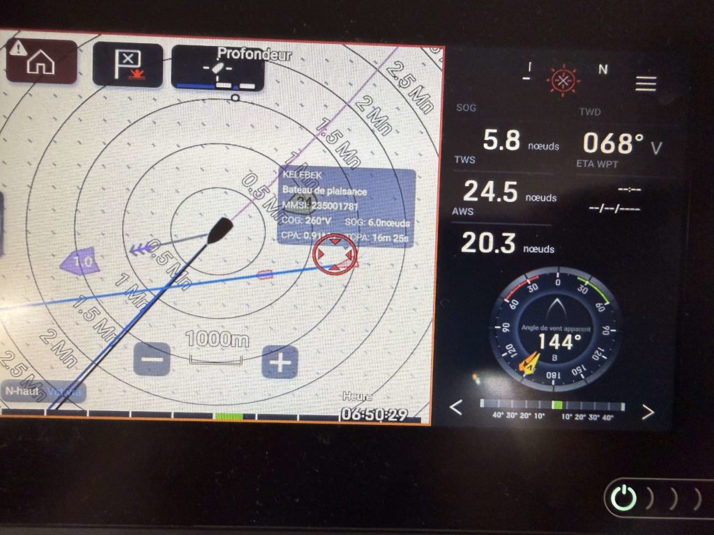 Distance parcourue 959,8 miles nautiques, soit plus de 1’777km (reste une distance théorique en ligne droite de 1832 miles nautiques)
